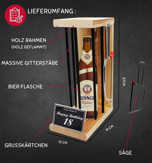 Erdinger Weißbier- 18 Happy Birthday - Eiserne Reserve Gitterkäfig Bier Geschenk 18. Geburtstag