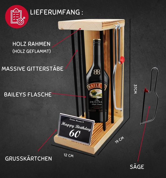 • Baileys - Happy Birthday 60 Geburtstag - Eiserne Reserve - Black Edition incl. Säge - Geburtstagsgeschenk