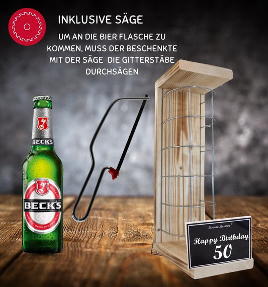 Becks Bier- 50 Happy Birthday - Eiserne Reserve Gitterkäfig Bier Geschenk 50. Geburtstag