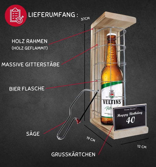 Veltins Pilsener - 40 Happy Birthday - Eiserne Reserve Gitterkäfig Bier Geschenk 40. Geburtstag