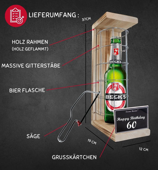 Becks Bier- 60 Happy Birthday - Eiserne Reserve Gitterkäfig Bier Geschenk 60. Geburtstag