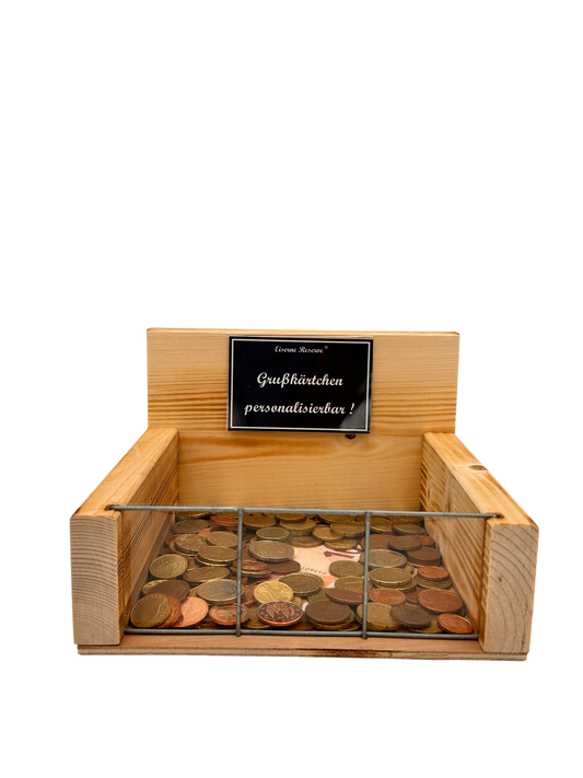 Eiserne Reserve Geld-Mine Spardose Geschenk - lustiges Geldgeschenk handgemacht aus Holz