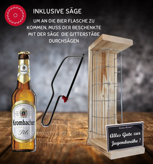 Krombacher Pils - Alles Gute zur Jugendweihe -Eiserne Reserve Gitterkäfig Bier Geschenk zur Jugendweihe