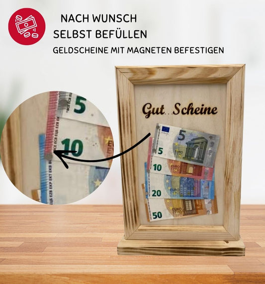 Gut…Scheine – Geldgeschenk Hochzeit Weihnachten Geburtstag Abschied Party – Geld verschenken – originelle Geld Geschenk für Männer und Frauen – die Geldgeschenk Verpackung – Geschenkidee aus Holz