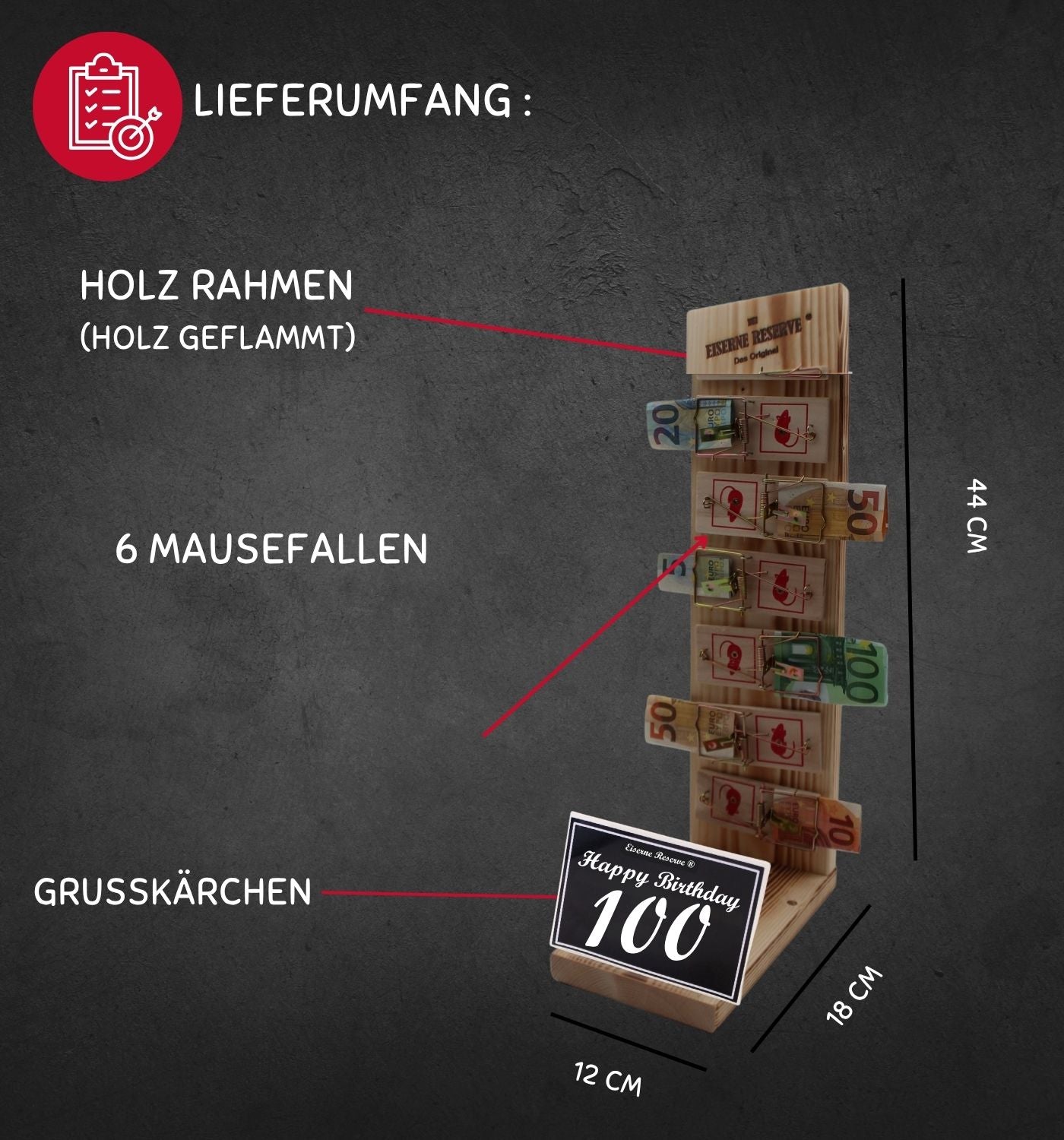 100 Happy Birthday - Eiserne Reserve Mausefalle Premium 6er Geldgeschenk 100. Geburtstag