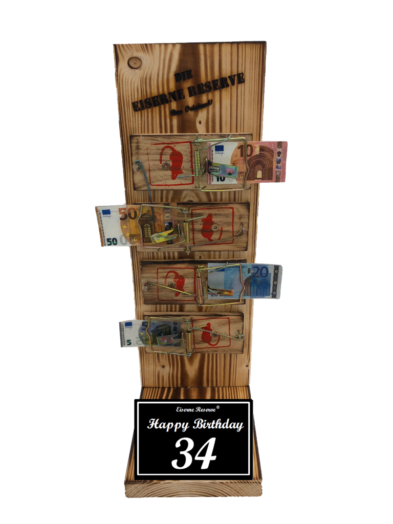 34 Happy Birthday - Eiserne Reserve Mausefalle Geldgeschenk 34. Geburtstag