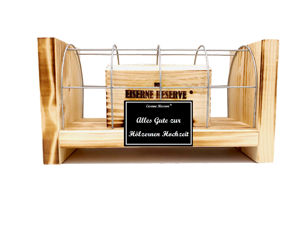 Alles Gute zur Hölzernen Hochzeit - Eiserne Reserve Gitterbox Geldgeschenk zur Hölzernen Hochzeit