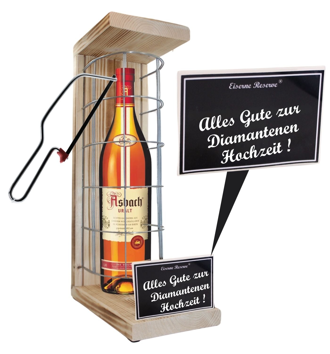 Asbach Uralt -Alles Gute zur Diamantenen Hochzeit - Eiserne Reserve Gitterkäfig Geschenk zur Diamantenen Hochzeit