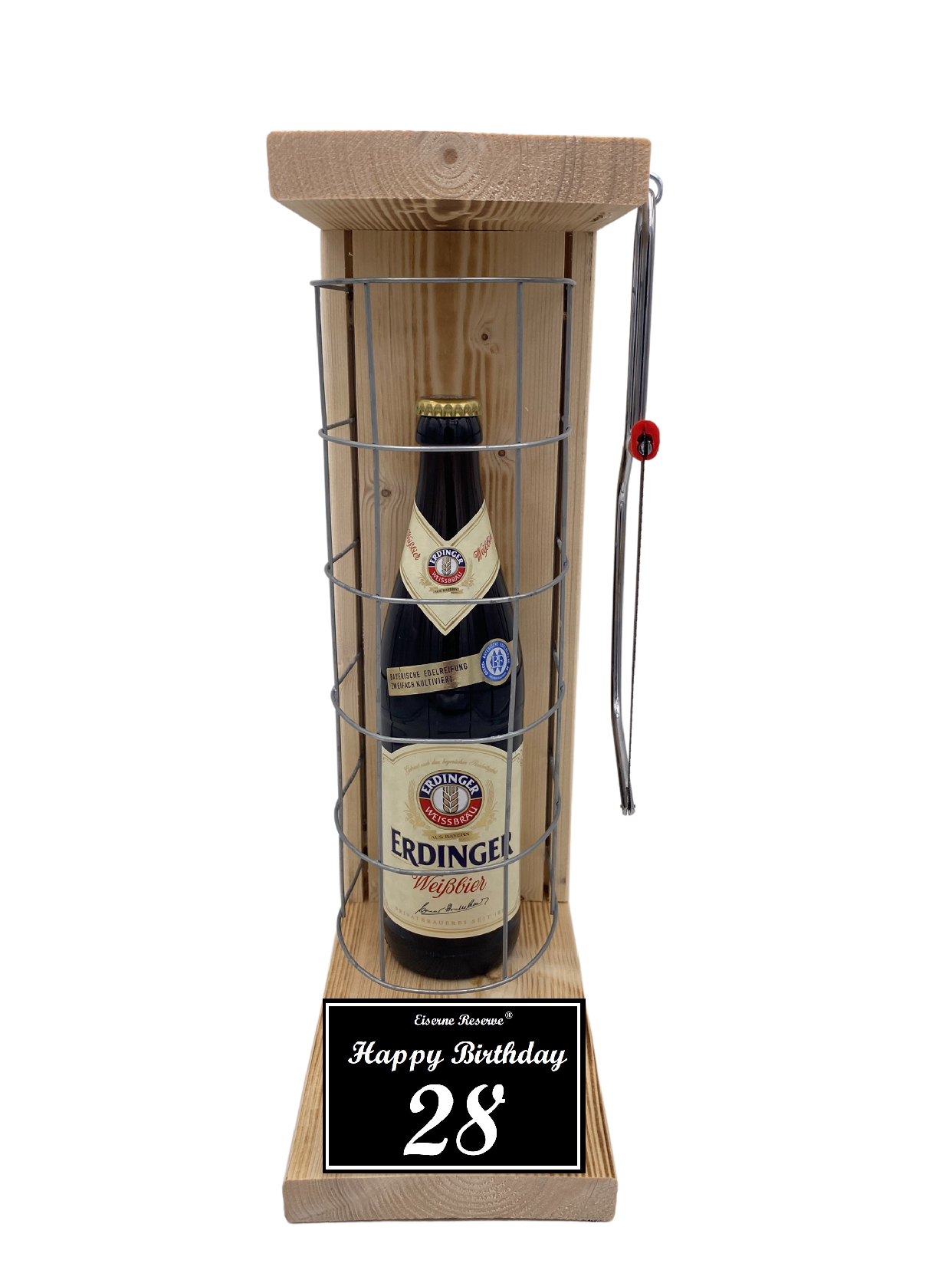 Erdinger Weißbier- 28 Happy Birthday - Eiserne Reserve Gitterkäfig Bier Geschenk 28. Geburtstag