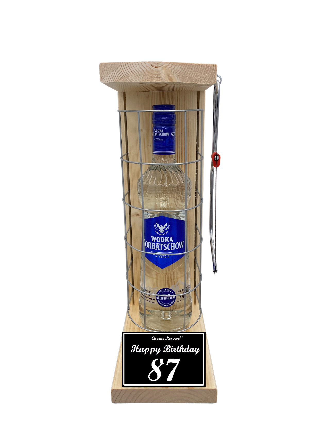 - Die Eiserne Reserve Gitterkäfig mit einer Flasche Wodka Gorbatschow 0,70L. Das perfekte Geschenk für Männer Frauen Mama Papa Mutter Vater Ehefrau Ehemann Opa Oma Tante Onkel Schwester Bruder Freund Freundin die entweder schon alles haben oder sich nichts wünschen